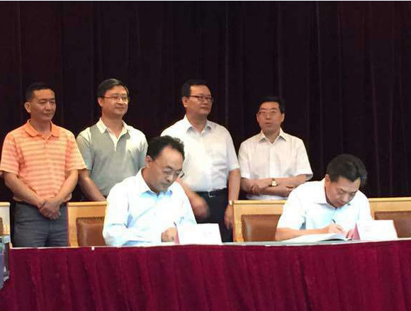 集团董事长赵思俭(左)与省农行副行长陈实(右)签订合作协议