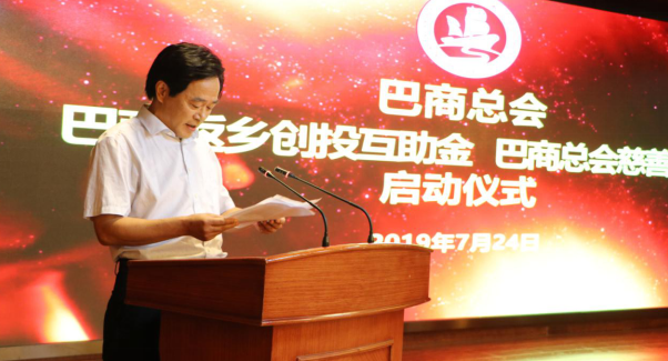 7月24日,巴商总会“巴商返乡创投互助金”“巴商总会慈善基金”启动仪式在巴中市恒丰饭店隆重举行。巴中市市委常委、市委统战部部长、市总工会主席袁闻聪,巴中市人大常委会副主任、市工商联主席任小娟及市级各部门相关领导,集团董事长、巴商总会会长赵思俭,常务执行会长杨天淑,监事长王代文及巴商总会部分执行会长、部分常务副会长、部分副会长、部分轮值会长、部分理事等参与了此次启动仪式。会议由巴商总会秘书长李成远主持。