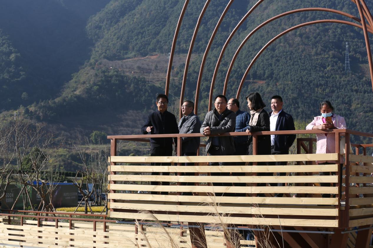李总陪同客户一同游览了公园溪地景观。在参观过程中,李总向客户重点介绍了海花沟特有的安宁河谷气候以及四季丰富的特色果蔬产出,并带领客户登上瞭望台远眺螺髻神山。