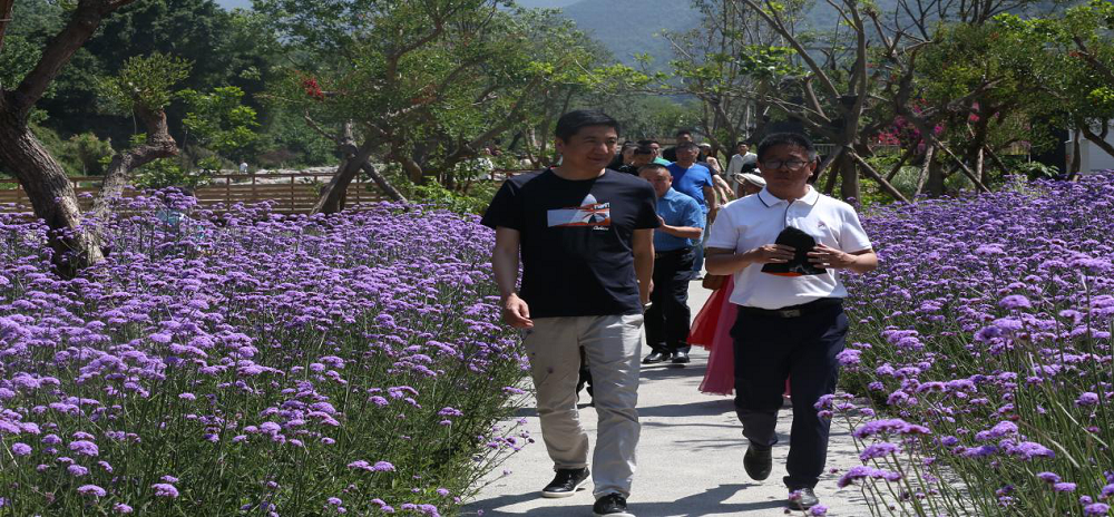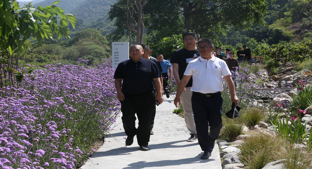 随后考察团沿溪边步道一路行向涧茶台,当下恰逢公园花卉盛开季,大家一边畅谈交流,一边领略美丽风景。