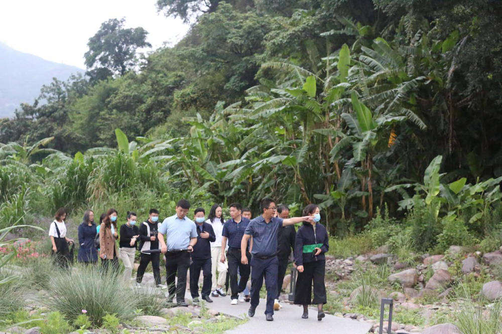 踏上观景台,直观螺髻山顶峰,亲切的感受到四周美景如画的风景拥抱着自己;这时李总为客人介绍了“螺髻山下˙自然疗愈”新自然生活理念及马尿河的由来。