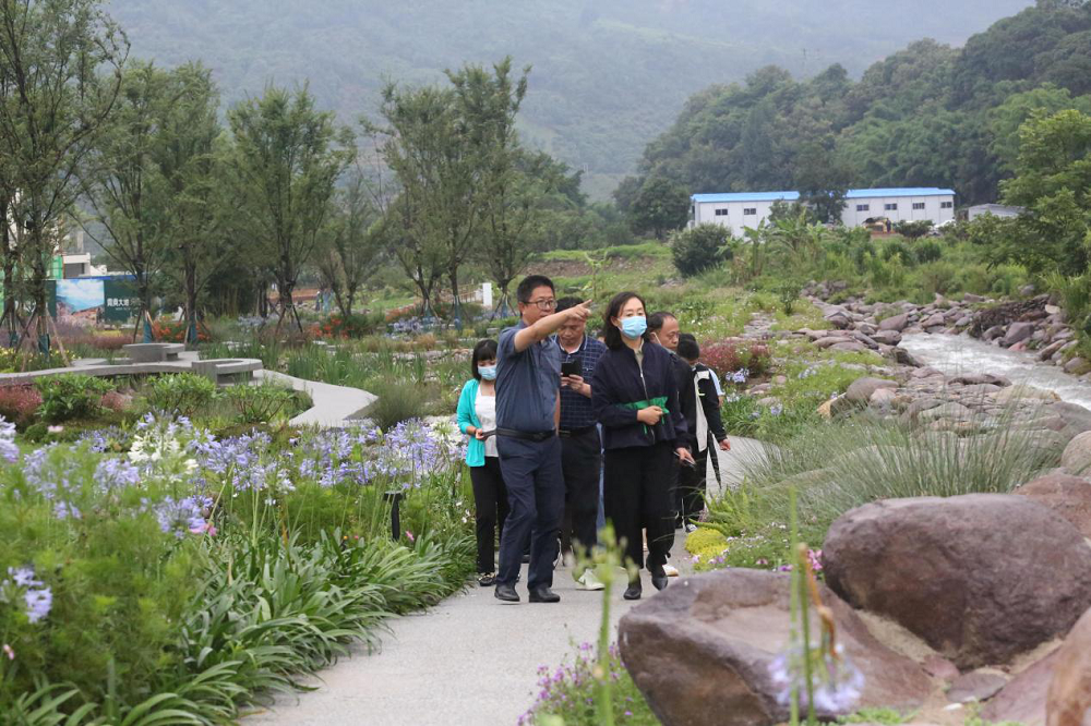 在大地公园景观步道,大家一路前行,欣赏盛开的百花,感受和煦的清风。李总向客人们详细介绍了项目景观的设计理念,花卉苗木的种类和特点等情况。