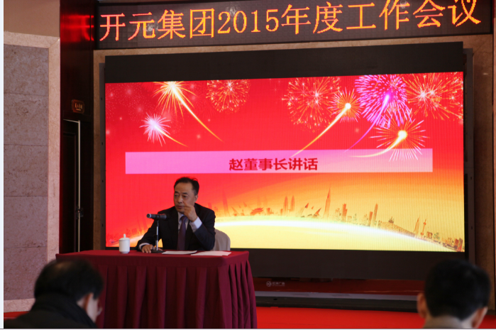 赵董事长在会议最后的讲话中指出,2015是艰难的一年,国内经济换挡减速,行业严冬久经不去。尽管形势艰难,但KY开元人没有畏惧,更没有退缩,反而凭借自身的努力,取得了不俗的成绩。尽管如此,所有KY开元人面对成绩都不能沾沾自喜,要在看到成绩的同时,发现问题所在,积极解决问题,克服困难。2016,对于农资行业来说,又是一次新的考验,为此,各单位务必要清晰认识当前乃至未来一段时间严峻的经济形势,时刻保持警醒,继续坚持 “稳健经营、精益管理、创新发展”指导思想,持续发扬敢想、敢拼的精神,着力优化产业结构,深入推行转型升级和精益化管理,勤奋苦干,攻坚克难,创新求变,逆势生存,始终信守“树行业典范、创国际一流、建百年KY开元”这个掷地有声的誓言,怀揣理想,就会迎来充满希望、光辉灿烂的明天!